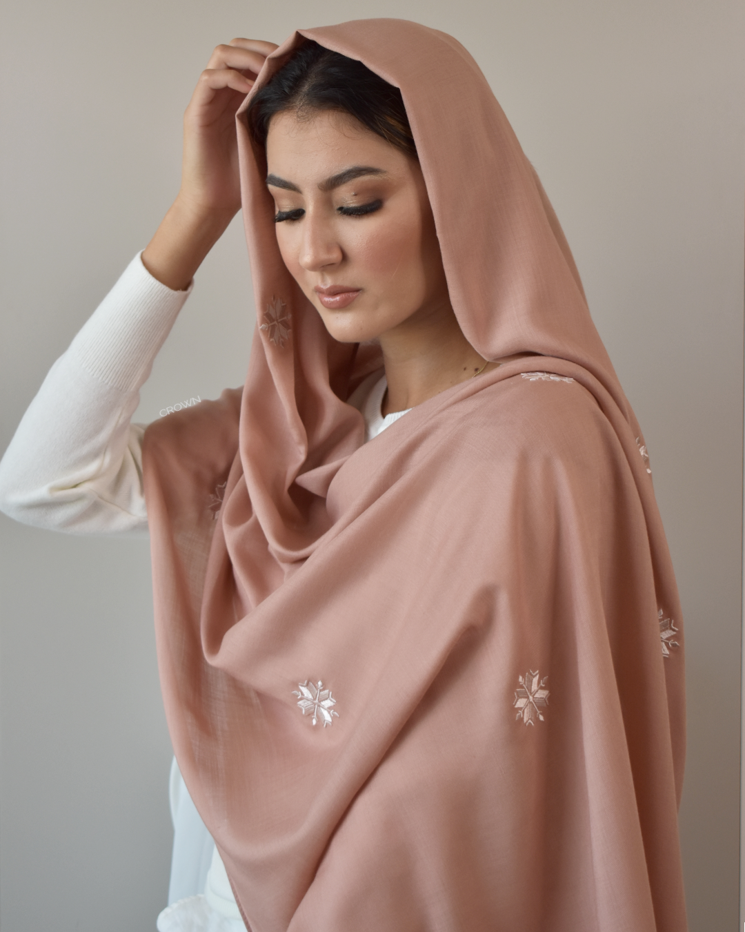 Embroidery: Embroidered with 'Snowflake' motifs in silk thread.