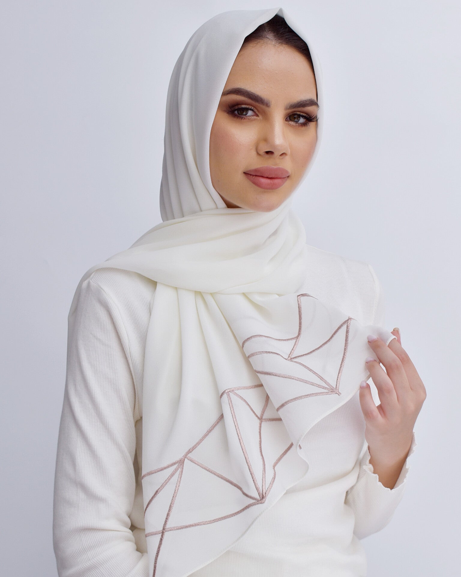 Inspired by the marbled texture, we designed this premium chiffon crepe shawl, with rose gold metallic thread embroidery, on one side for a sophisticated and chic look.